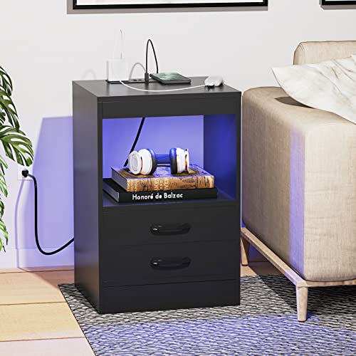 ARunThLana Chevet LED avec tiroirs, compartiment ouvert, 3 p...