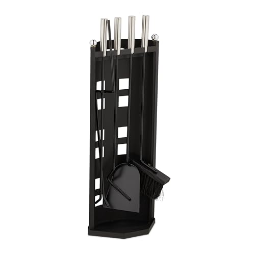 Relaxdays Couverts à cheminée, 5 pièces, serviteur, tisonnie...