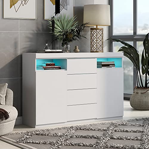 Merax Buffet LED blanc brillant, armoire rangement 2 portes...
