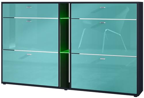 Vladon Meuble à Chaussures Bascule LED Noir Mat Turquoise 15...