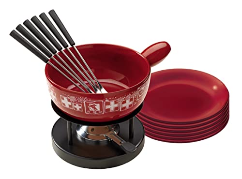 Rikon Set de Fondue au Fromage Rouge Céramique 22x22x30 cm