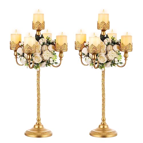 Nuptio Chandelier Métal Or 78cm Set de 2 Bougies Piliers 5-B...