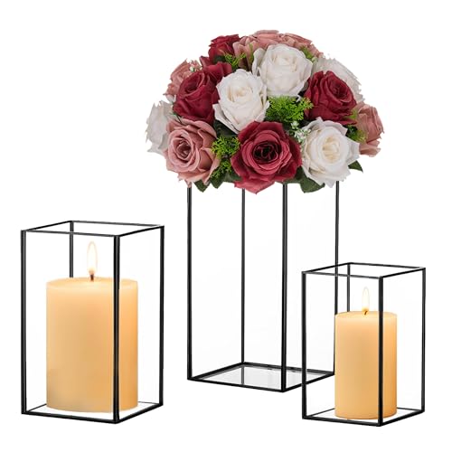 Lanterne Bougie Verre Bougeoir Noir: Hewory Set de 3 Lantern...