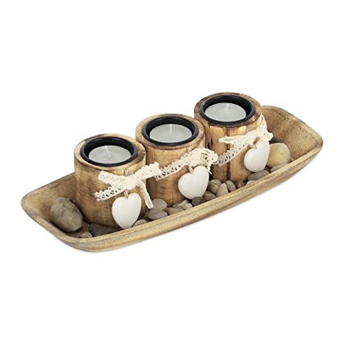 Relaxdays Porte-Bougies Plateau Pierres 3 Bougeoirs Cœur Nœu...
