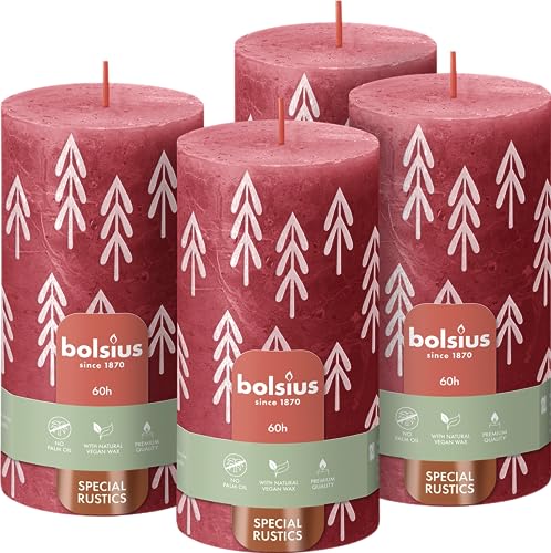 Bolsius Lot de 4 bougies piliers rustiques Silhouette - Roug...