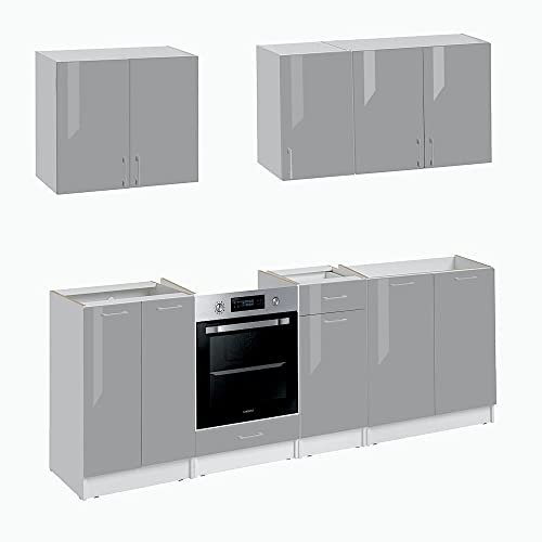 Cuisineandcie - Cuisine ECO Gris Brillant 240 cm - Set de 7...