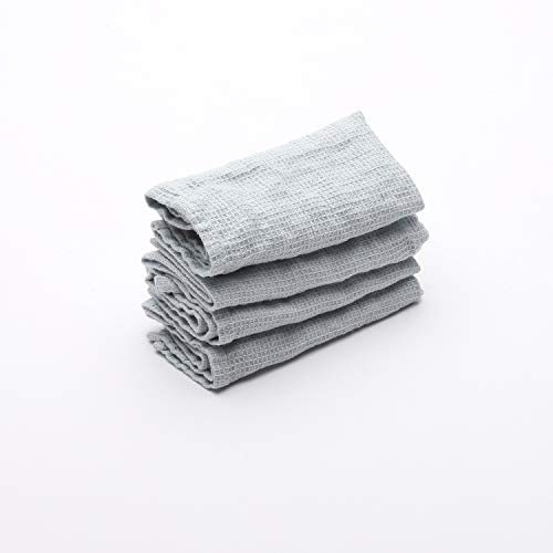 Linenme Set de 30x30 cm Gaufré Coton Bleu