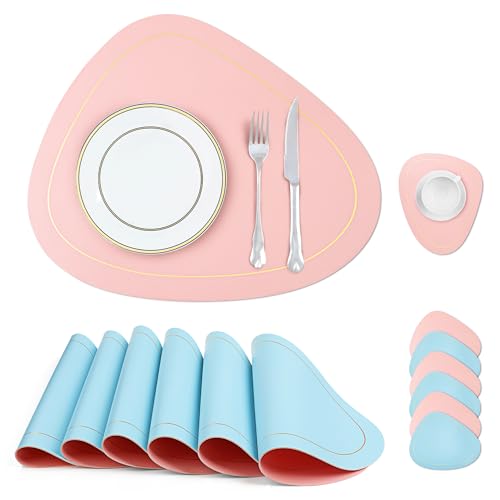 Fanquare Sets de Table Ronds Cuir, 6 Sets de Table et Sous-V...