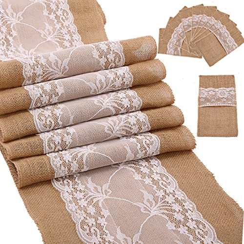 Table toile de jute dentelle 275x30cm sacs couverts cannage...
