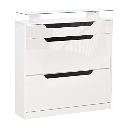 Homcom Shoe Storage Cabinet, Slide Out Drawer, 2 Doors, Temp...