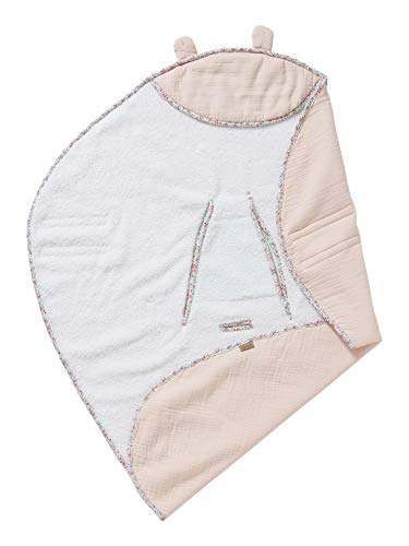 VERTBAUDET Plaid à capuche pour siège-auto coque rose biais...