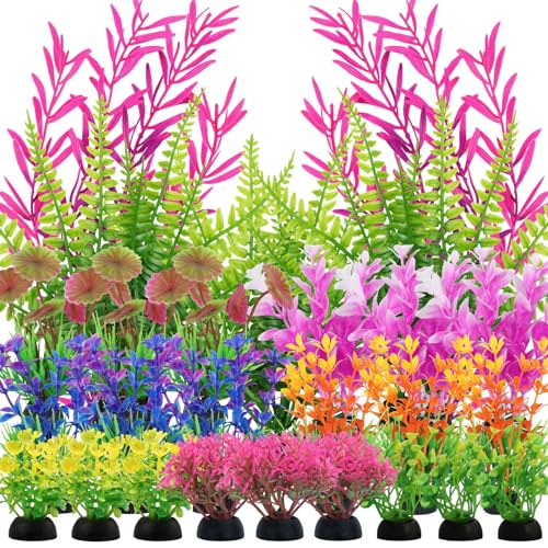 Plante Artificielle Aquarium Deco, 14 Pièces Vibury Colorées...
