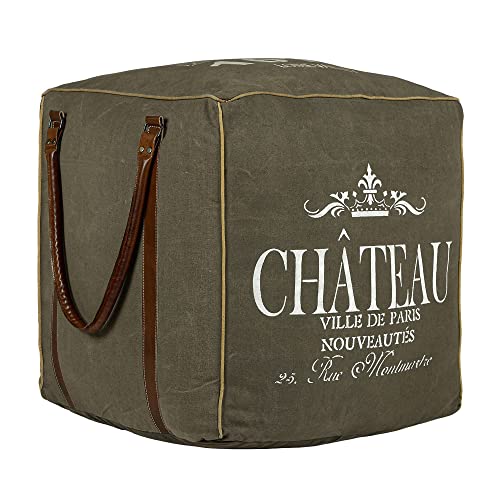 WomanDesign Cube Sofa Pouf Carré 45cm Toile/Cuir OliveMarron...