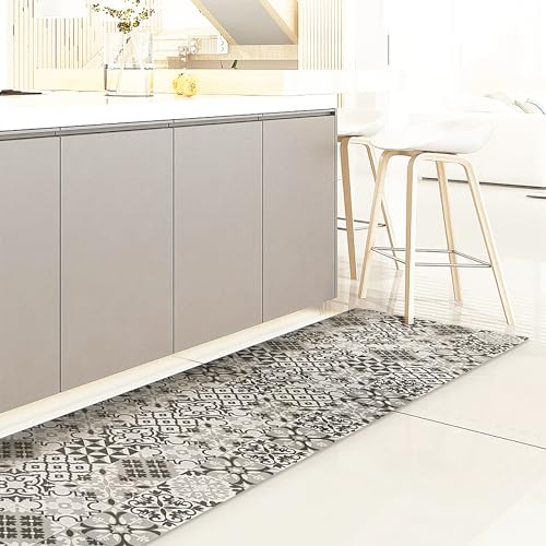 CREARREDA Tapis de Cuisine antidérapant tuiles Grises 180x50...