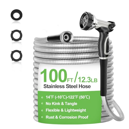 Tuyau d'arrosage métal 30.5m, acier inoxydable 304, bus mult...