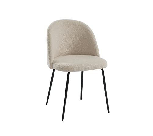BAÏTA Chaise Tissu Bouclette Beige Pieds Métal Noir
