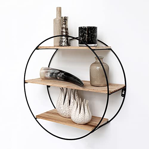 Vivol Étagère murale en métal noire avec sols en bois - 3 ta...