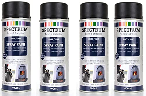 Lot 4 Peinture Spray Haute Température Noir Mat Aérosol 800°...