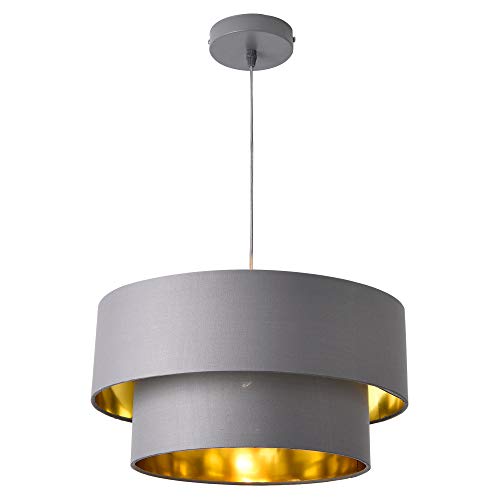 Lumière Lampe Suspendre E27 60W Métal et Textile Gris Doré