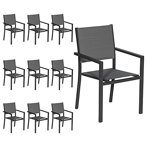 Happy Garden Lot 10 Chaises Rembourrées Aluminium Anthracite...