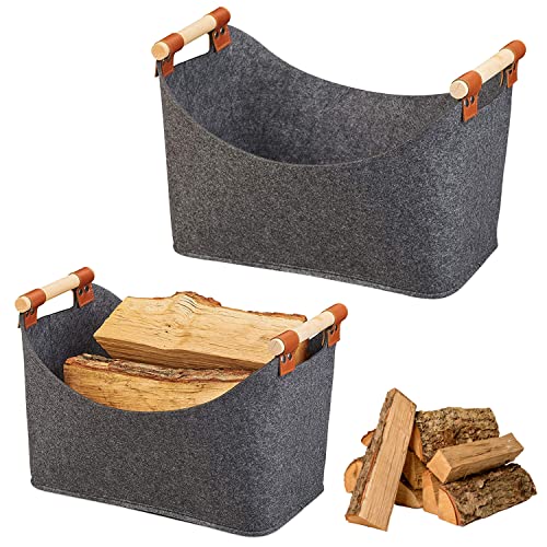 [Panier en feutre de grande capacité]: Grand sac à bûches av...