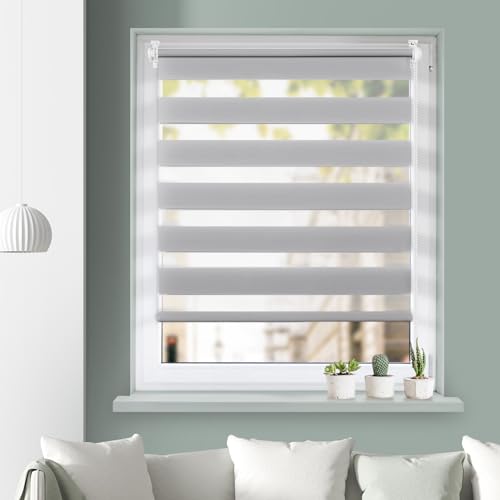 STORESDECO Store Enrouleur Jour et Niut Double Tissu Argent
