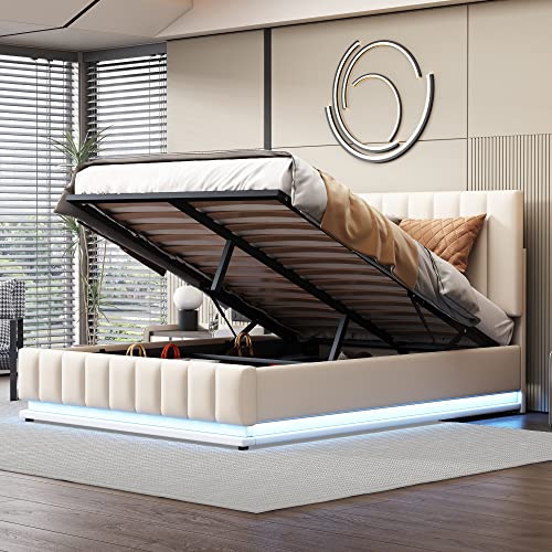 Capitonné LED, sommier latier métal, tiroir double, espace d...