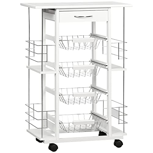 Chariot de service cuisine multi rangements 4 paniers + 4 bo...
