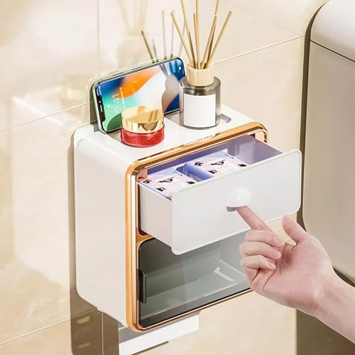 Boîte rangement papier toilette avec tiroir, étagère télépho...