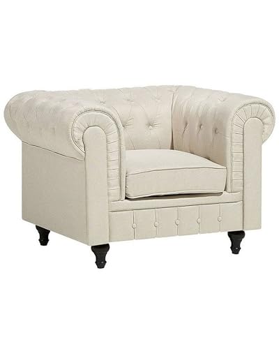 Fauteuil en Tissu Beige Dossier à Points Diamant Style Class...