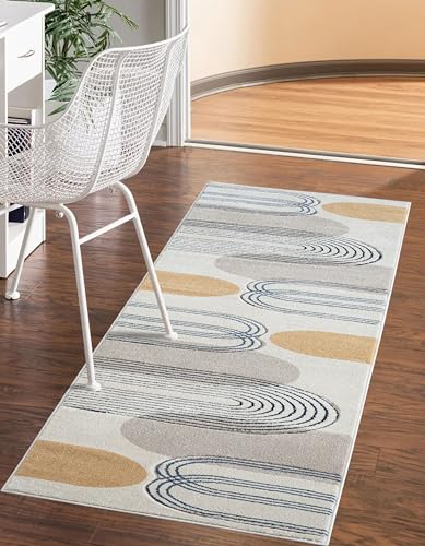 Tapis de couloir beige, court poil, style moderne et géométr...