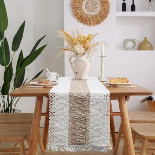 INHEMING Macramé Chemin de Table avec Pompon en Coton et Lin...
