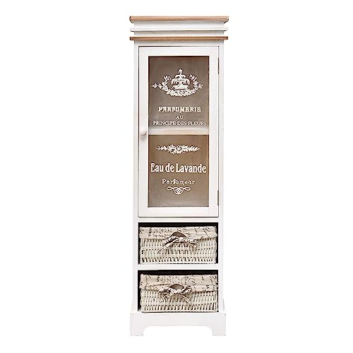 Vitrine Blanc Shabby Style Armoire Rangement Bois Osier