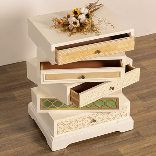 MZQMK Table De Nuit Style Pastoral Rétro Blanc