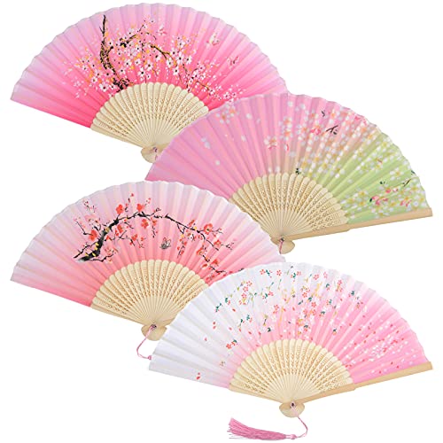 AWCIGG Lot de 4 Eventail Tissu Bois Plié Chinois Eventails P...