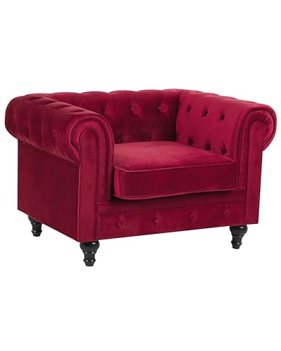 Fauteuil en Velours Rouge Dossier à Points Diamant Style Cla...