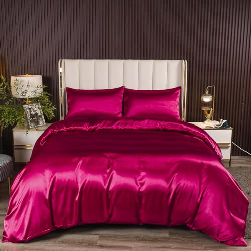 Housse de Couette Satin 200x200 Vin Rouge Taies d'Oreiller 6...