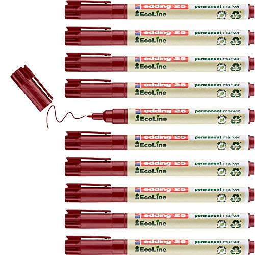 25 EcoLine Permanent Marqueur Universel Rouge 10 Stylos Fine...