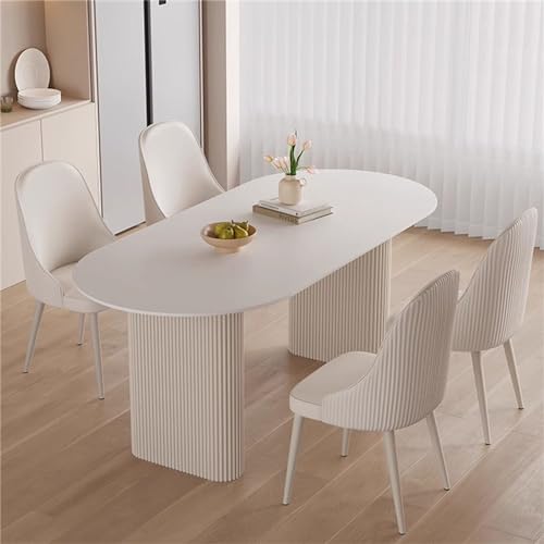 Ensemble Table À Manger Marbre Ovale 4 Chaises Rembourrées