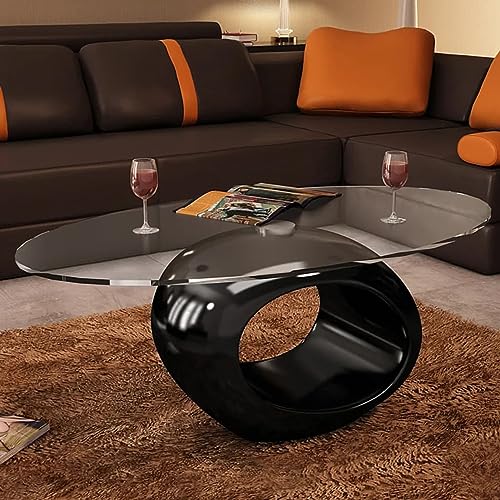 ARKEM Table Basse Verre Ovale Noir Brillant