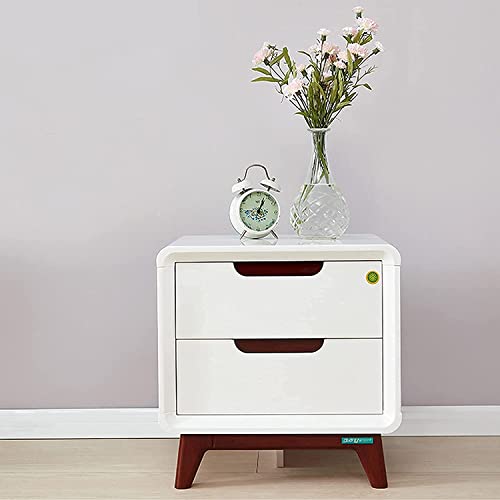 Table de chevet en bois blanc, canapé avec tiroir et étagère...