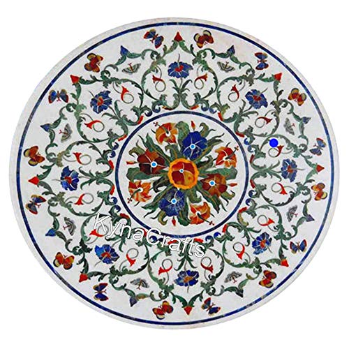 Table basse marbre blanc incrustée de pierres précieuses bri...