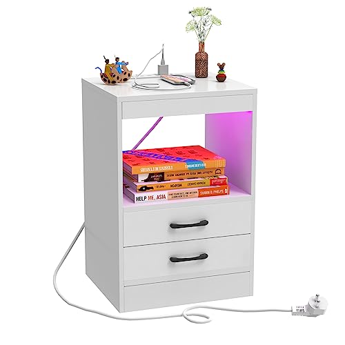 Pipoxer Table LED Chevet Blanc avec Station de Charge, 2T16...