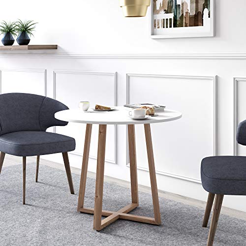 Table basse Dmora ronde haute, 90 x 90 x 75 cm, blanc et chê...