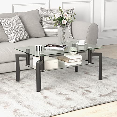GOPLUS Table Basse Verre Trempé Moderne Minimaliste Salon