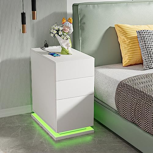 L'éclairage LED Table de Chevet avec tiroirs blancs 30x50x63...
