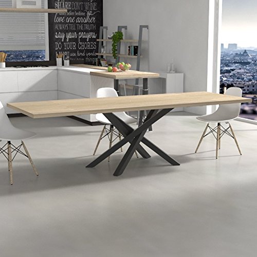 VE Polinesia Table Rallonge Bois Acier Noir - 180x100x80 cm