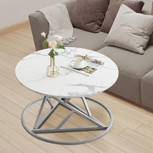 Gokhomx Table Basse Ronde Blanche Moderne Design Effet Faux...