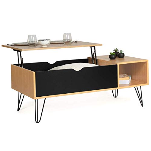 Table basse avec plateau relevable NOEMI bois et pieds éping...