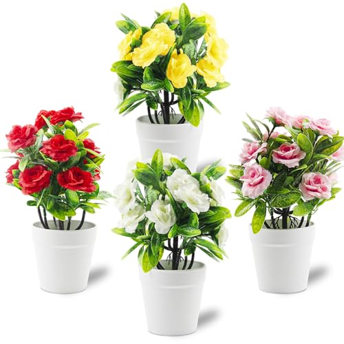 Limpac 4 Pièces Fleurs Roses Artificielles Mini Pot Plante A...